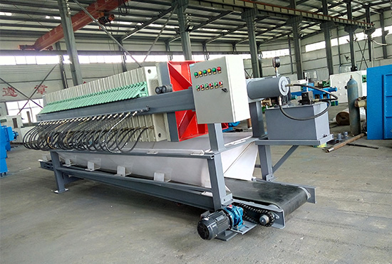 過濾、輸送壓濾機是在壓濾機濾板下方裝置了皮帶輸送,用于輸送濾板拉開時卸下的濾餅。該裝置適用于不易做基礎的工作現場,可以把物料輸送到指定的地方,減輕了員工勞動強度。